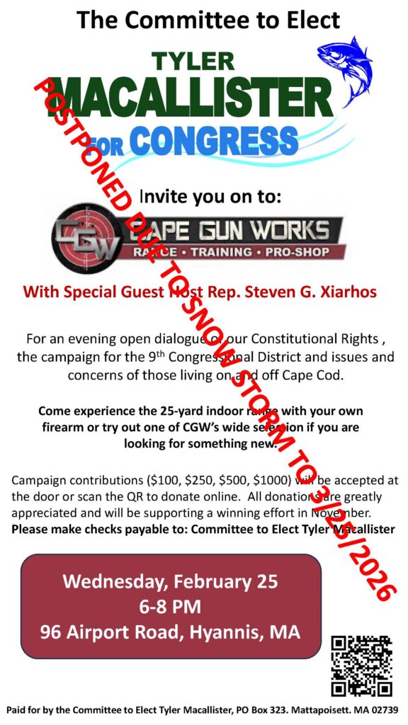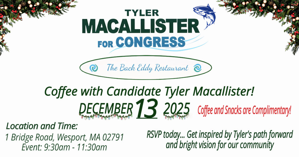 Join us to support Tyler Macallister and his race to Congress at The Fox Hole in Osterville, MA